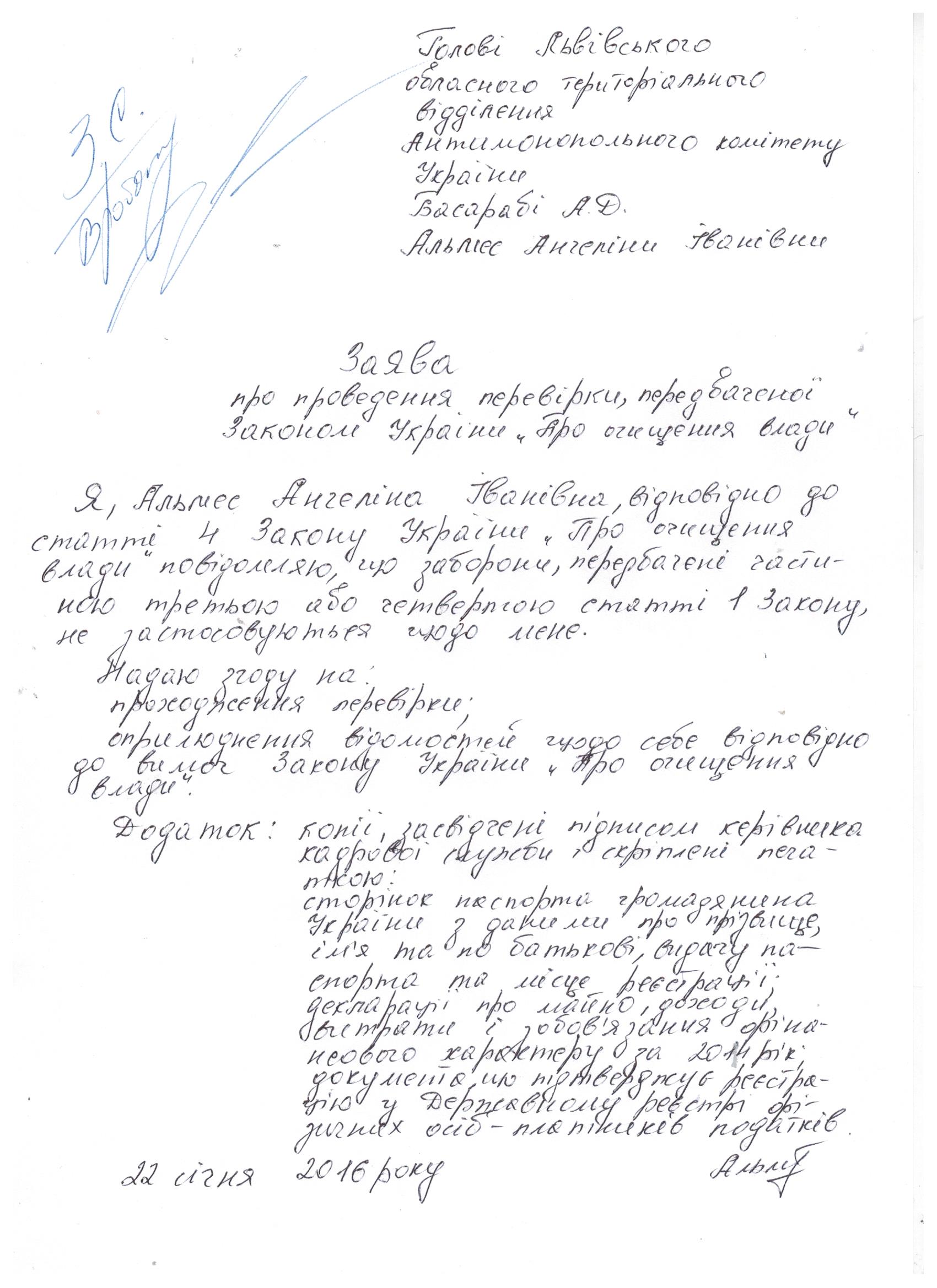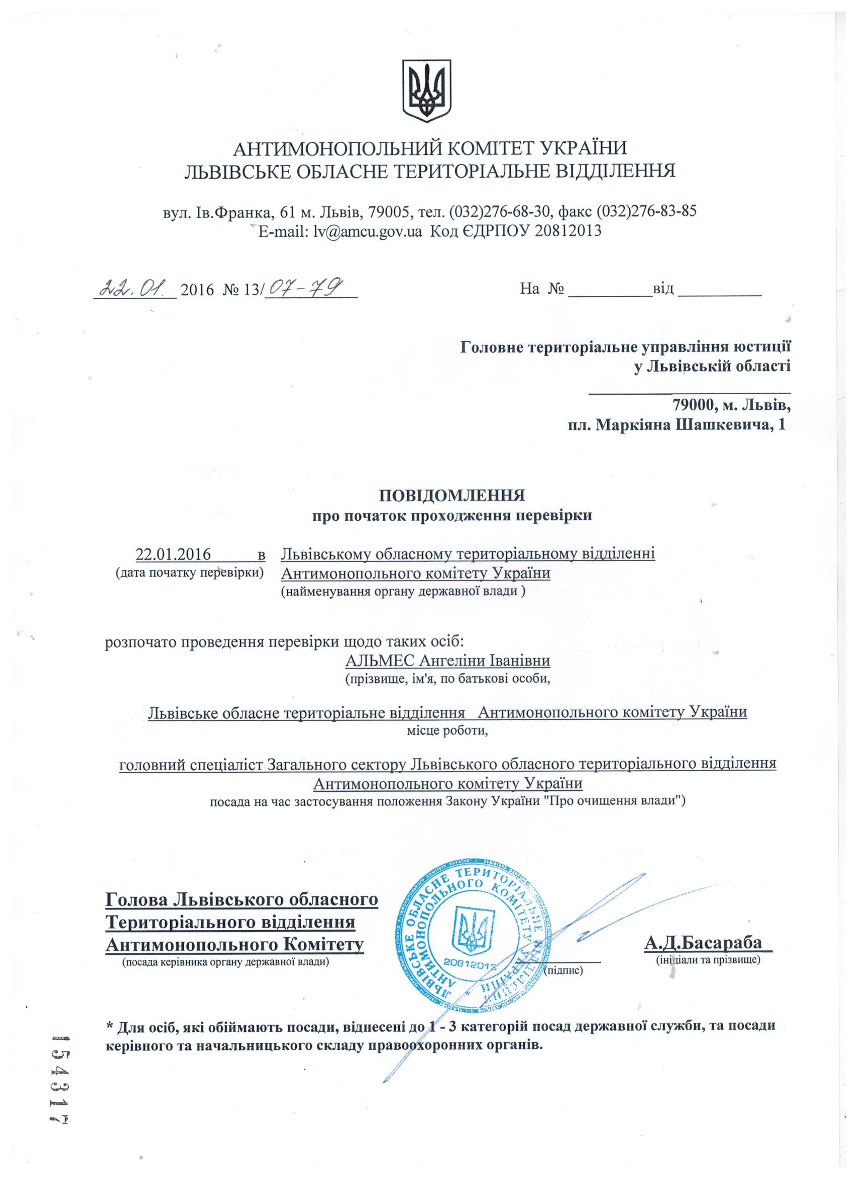 Повідомлення про проходження перевірки відповідно до Закону "Про очищення влади"