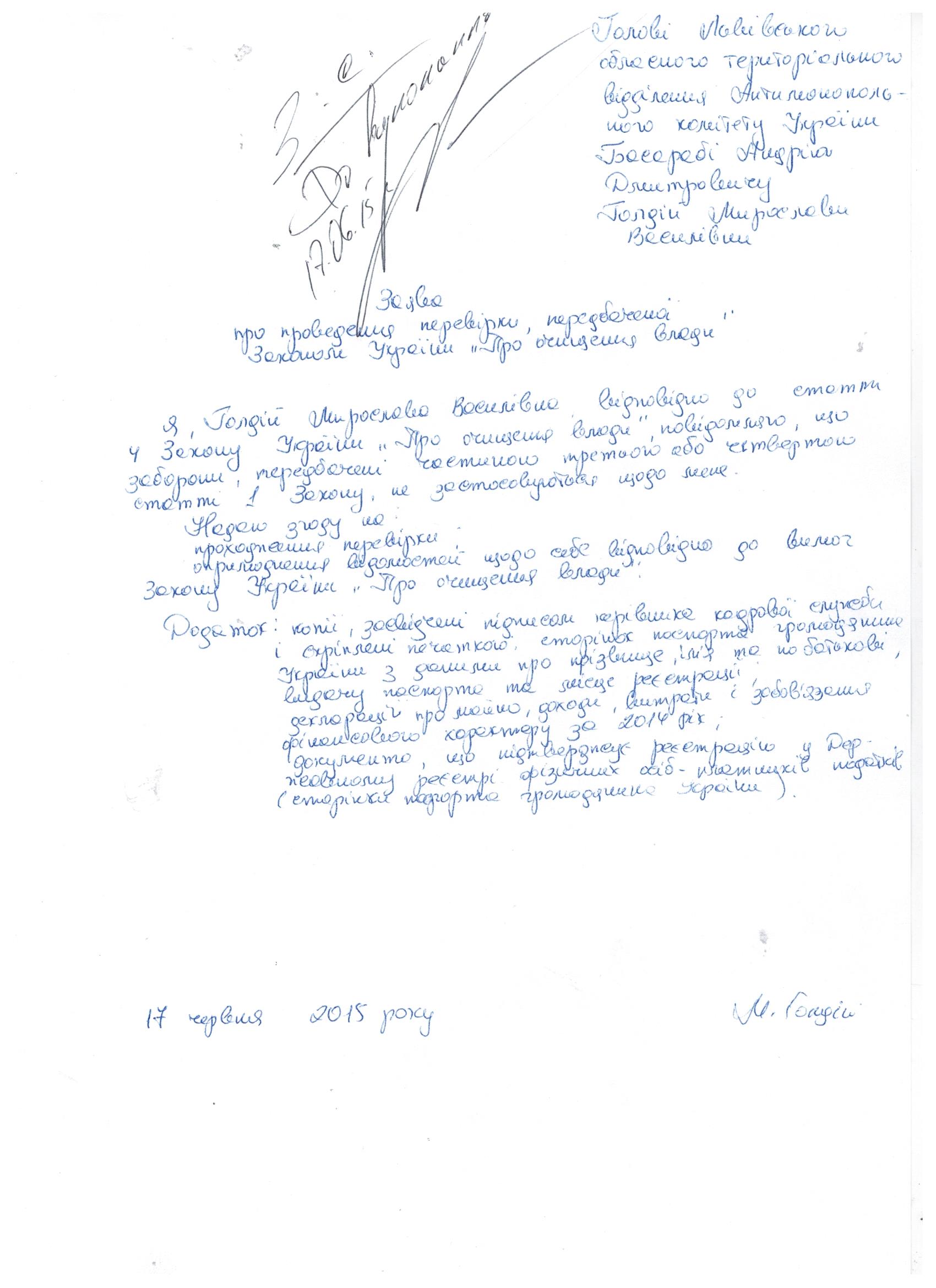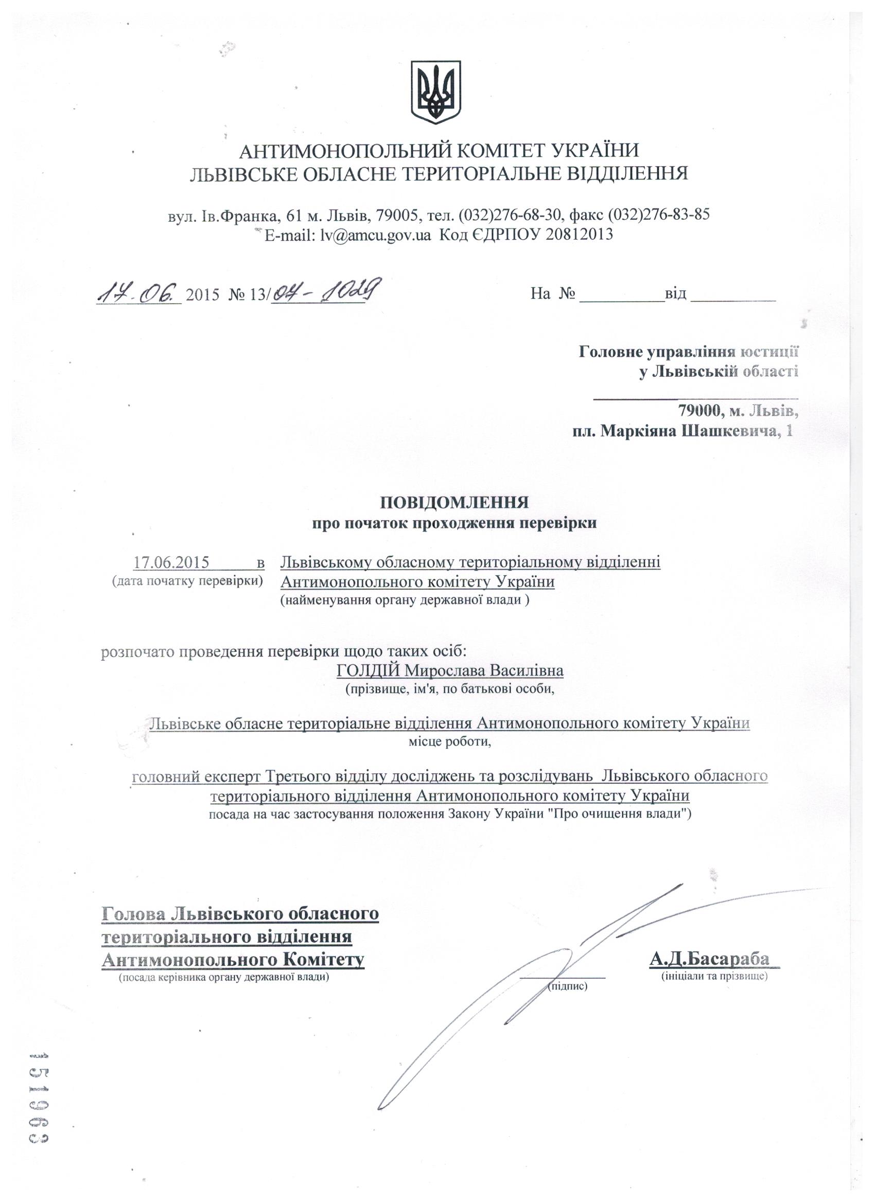 Повідомлення про проходження перевірки відповідно до Закону "Про очищення влади"