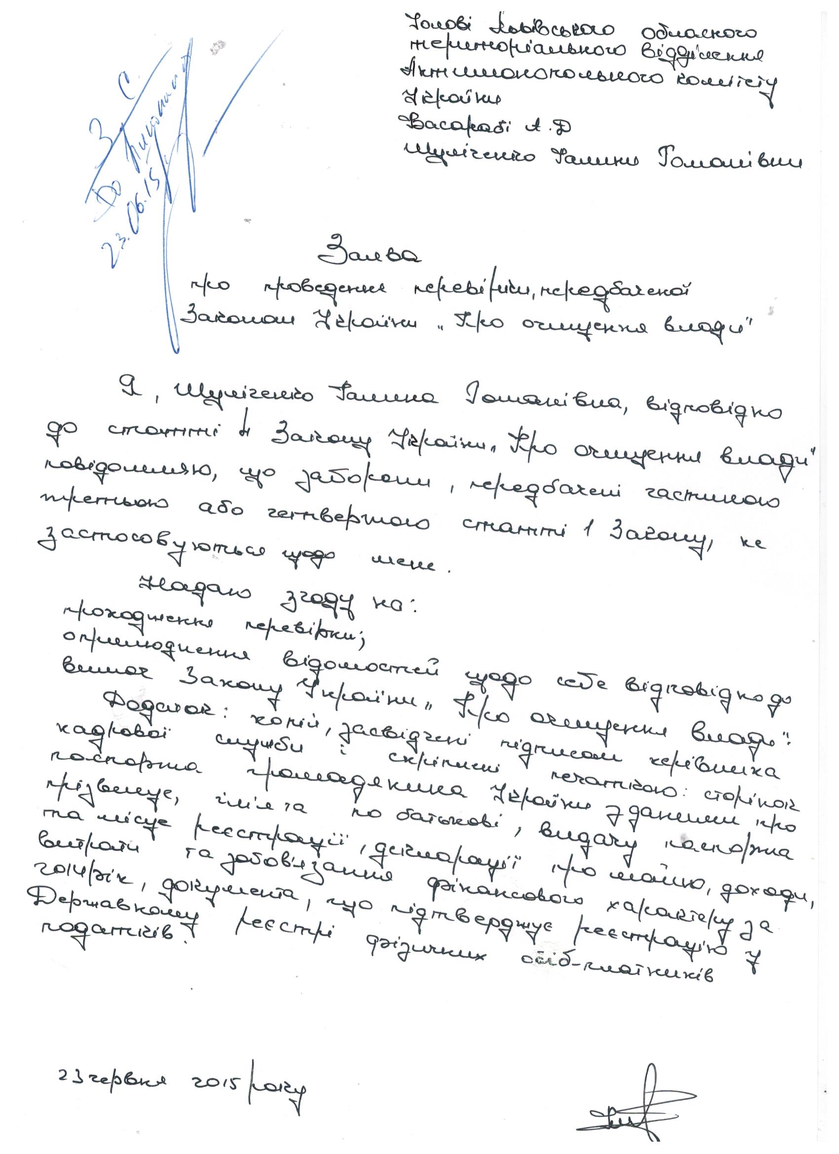 Повідомлення про проходження перевірки відповідно до Закону "Про очищення влади"